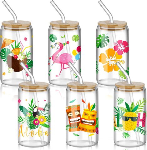 ถ้วยกาแฟฮาวายเขตร้อนแก้วฮาวายพร้อมฝาและหลอดแก้วฮาวายสำหรับปาร์ตี้ฤดูร้อน