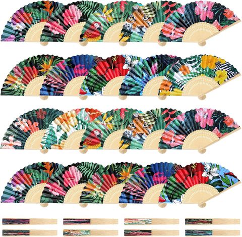 อุปกรณ์จัดงานแต่งงานสไตล์ฮาวายที่ออกแบบได้ตามที่ต้องการสไตล์ฮาวายพัดพับได้สำหรับคืนฮาวาน่า