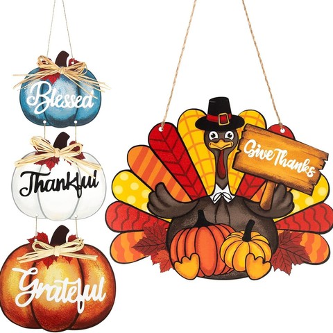 새로운 추수 감사절 도어 행거 나무 호박 터키 서명 가을 수확 장식 농가 홈 파티를위한 야외 장식