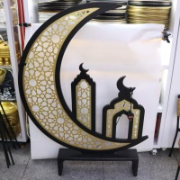 Pafu 120cm Wooden Moon Mosque Mubarak Decorative Luminous LED Night Lights Wooden Crafts for Islamic EID Mubarak Home Decoration
