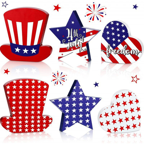4th of July Decoration Independence Day Standing Stars USA Patriotic Wooden Star Decor