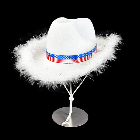 Pafu USA Patriotic Party Accessories for Women Red Whiter and Blue Western Style Adjustable Cowgirl Hat