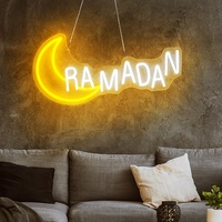Pafu Islamic Muslim Home Wall Decoration Ramadan Mubarak Neon Light Eid Mubarak Yard Sign Ramadan Neon Sign with Moon