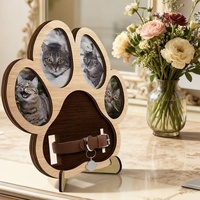 Pafu Handcrafted DIY Wooden Pet Memorial Photo Frame Cat and Dog Collars Paw Shape Dog Loss Memory Gift for Pet Lovers