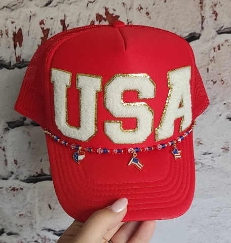 Indepence Red White and Blue Custom Trucker Hats Interchangeable Chain 4th of July Hat with Chains