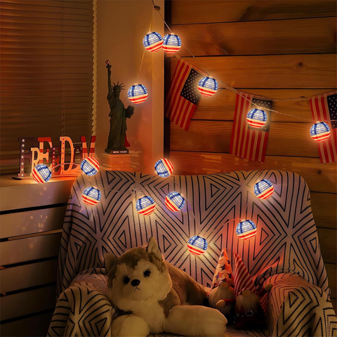 4th of July American Flag Lantern String Lights 10 Mini Lantern Lights with Plug Independence Day Patriotic Hanging Lights