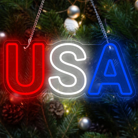 USA Independence Day Neon Sign for Wall Bedroom Home Decor Patriotic Hanging Ornaments 4the of July USB Power Lights