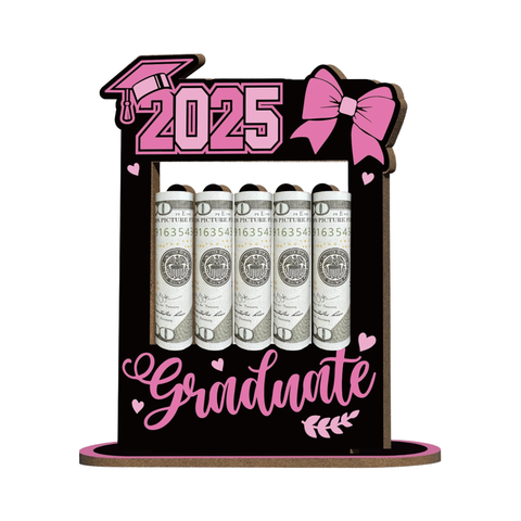 ที่ใส่ธนบัตรสำหรับปาร์ตี้จบการศึกษาที่ใส่เงินพร้อมกล่องไม้5รูที่ใส่เงินสดมีโบว์สีชมพูอุปกรณ์สำหรับ2025