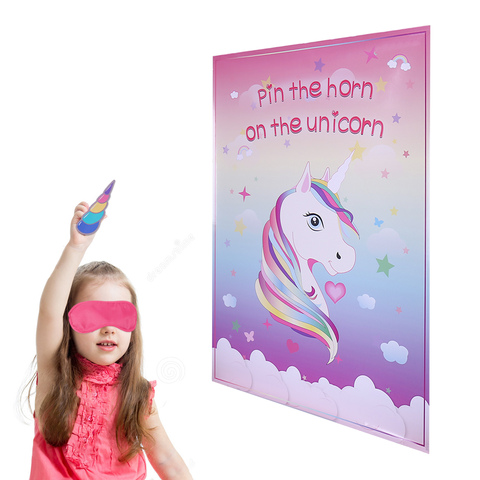 ユニコーン誕生日パーティーゲームセットユニコーンにホーンをピンで作るユニコーンステッカー自分撮りポスター